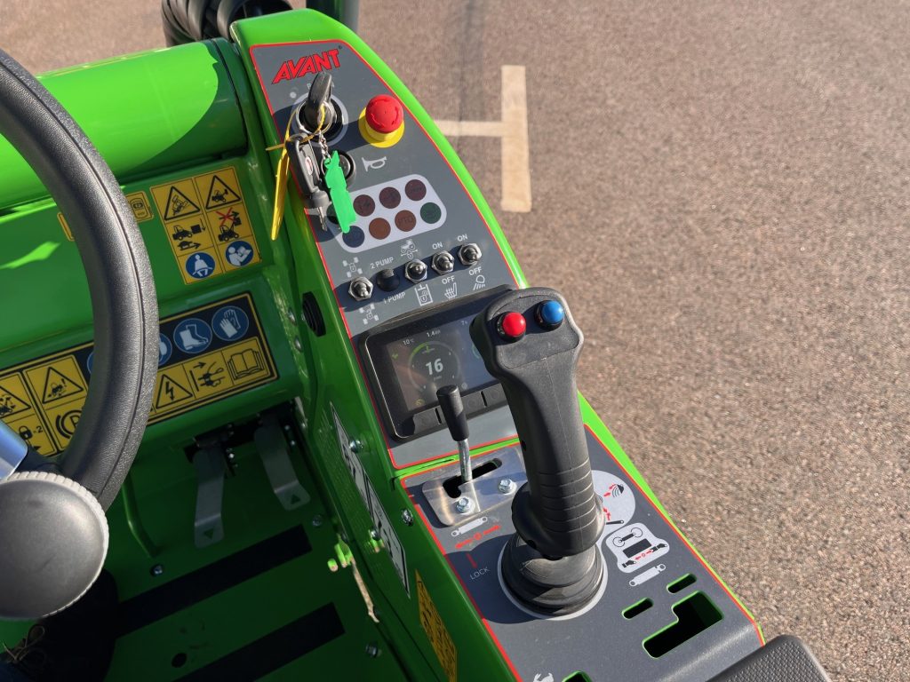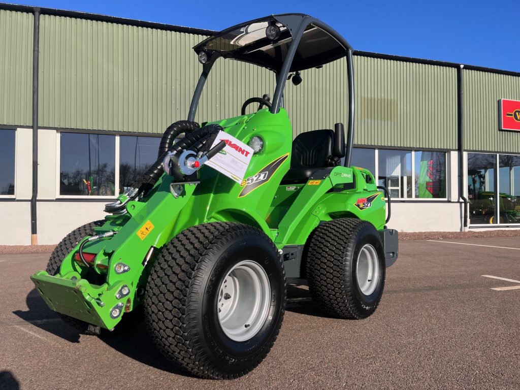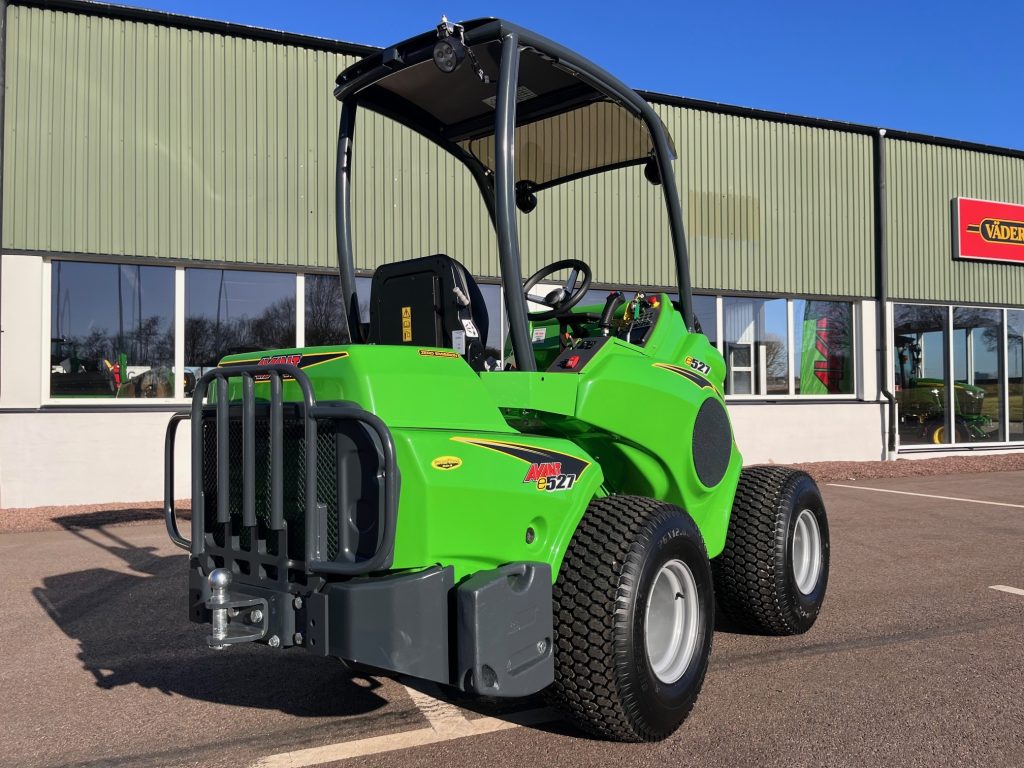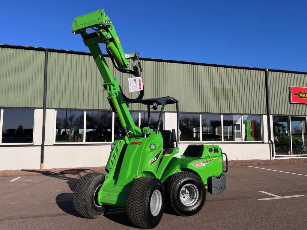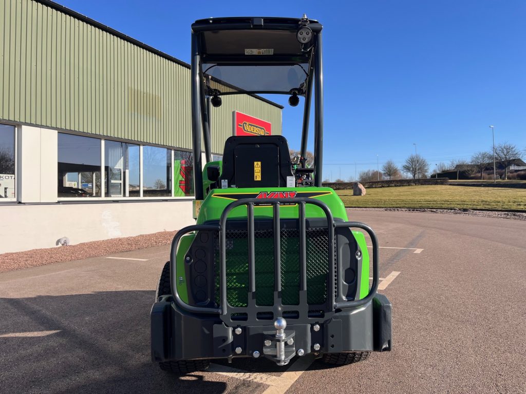 Batteri: Avant OptiTemp litiumjon 27 kWh, Lyftkapacitet: 900kg, Lyfthöjd: 2,8m, Hastightet: 10km/h, Hjul 26x12.00-12 Gräsdäck, 4X4 med antislipventil och lock on/lock-off diff, Laddkabel 1-fas 230 V Schuko ->Typ 2, Laddningsuttag Typ 2 och snabbladningsport, Parallellföring, Redskapsfäste med hydrualisk låsning, Joystick 6-funktioners, Hydrauluttag fram standard, Ropsbåge med tak, Arbetsbelysning LED 2+1 2810 Lumen med bred ljusbild, Kulkoppling 50 mm med sprint, Sidovikter par 80 kg, Stansning av VIN-nummer på maskinens ram