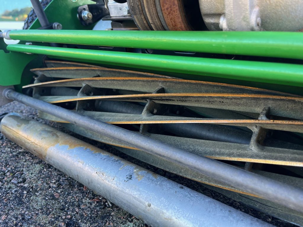 Begagnad singelklippare, 56 cm arbetsbredd. 11 blad cylinder, belysning och transporthjul. Vagn att köpa till finns.