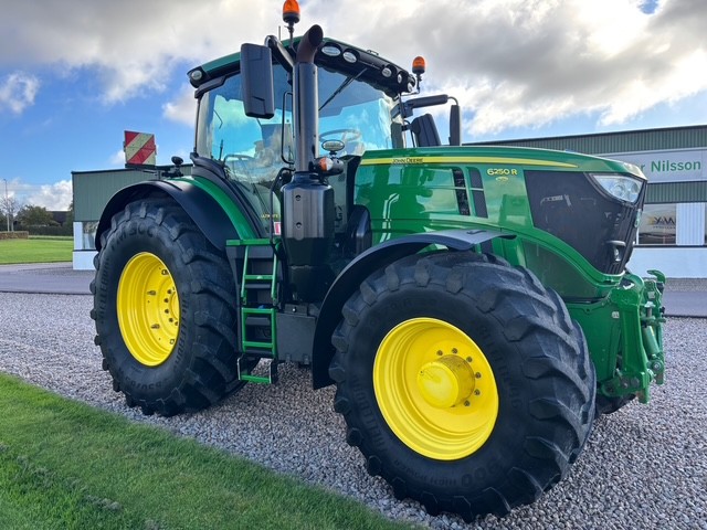 John Deere 6250R Ultimate Edition AutoPowr växellåda, Årsmodell 2020, ca8600 timmar, Frontlyft, CommandPRO körspak, Framaxelfjädring, Hyttfjädring, Premiumsäte, autotrac förberedd, Elektriska teleskopiska speglar, Framaxel med bromsar, Luft och hydraulisk vagnsbroms, 650/85-38 , 600/70-30, 5dv uttag bak, LS, kylfack, dubbelmontage 650/85-38 finns att köpa till 59 000kr + moms