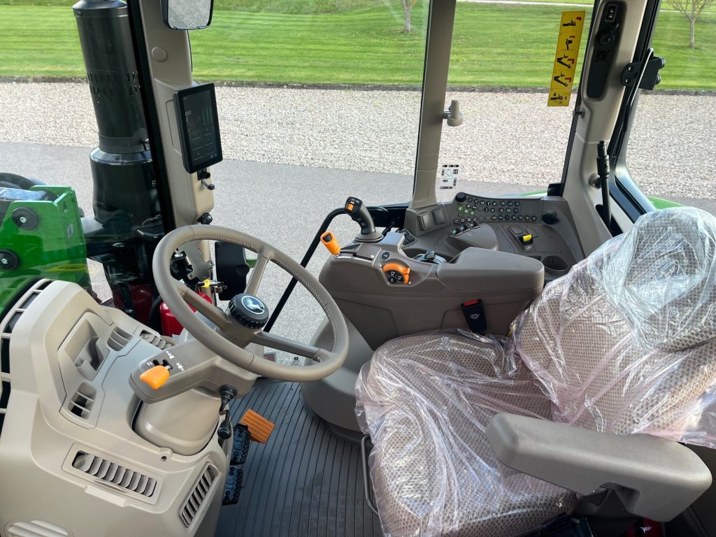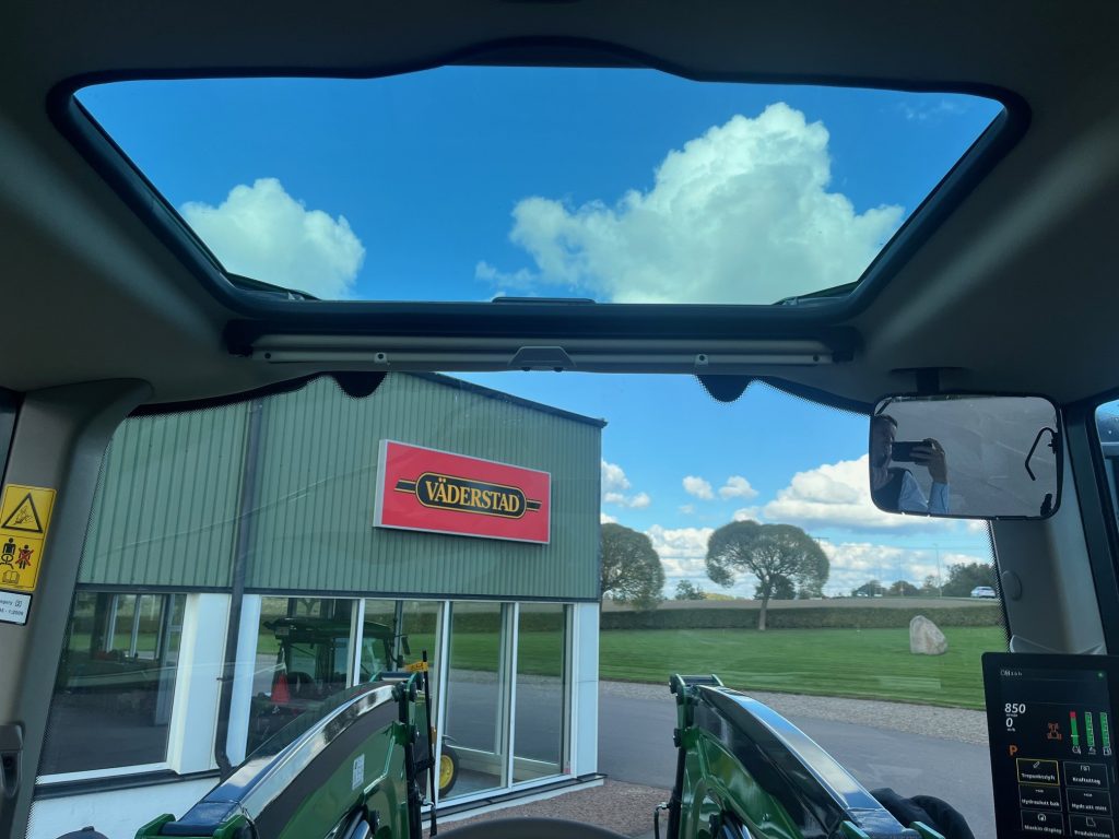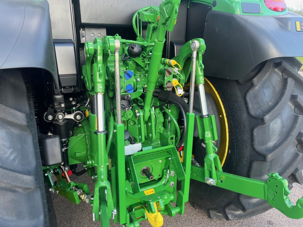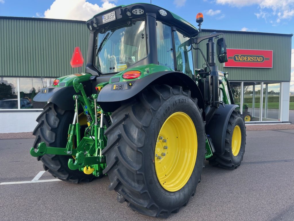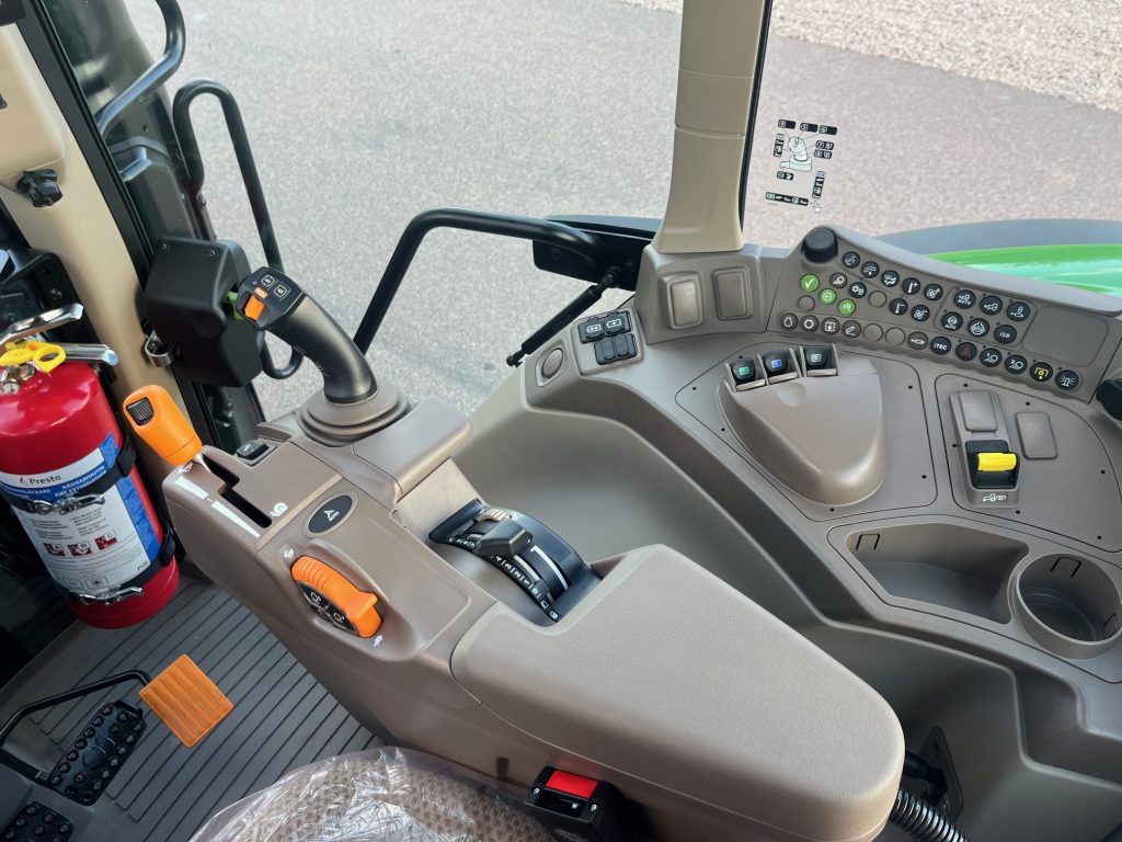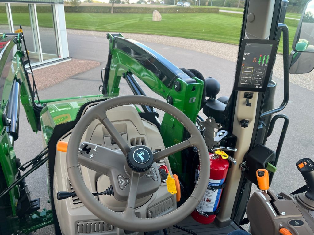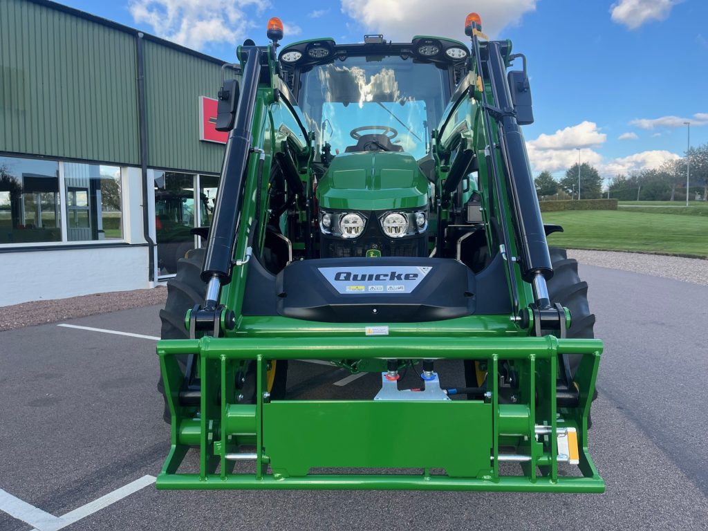 AutoPwer IVT -40km/h, Hyttpaket Premium, Compact CommandARM, Mekanisk Hyttfjädring, Premiumsäte, Speglar - Manuella, Premiumradio, 4WD framaxel TLS (Framaxelfjädring), Bakhjul: 600/65R38, Fram: 540/65R24, Stabiliseringsstag, Hydraulpump: 114liter/minut, 3 elektriska hydrauluttag, E-SCV (Elektrisk ventil, 3 funktioner), AutoTrac Ready, JD-Link Modem, SF7500 mottagare, Bränsletank 200l, Kylfack, Elektronisk startspärr, Panoramatak av glas, Hydraulistk vagnsbromssystem - dubbelkrets, Extra kraftiga bakbromsar, Powerfill-broms, Bakre skärmförlängning, Svängbara framskärmar, Belysningspaket - Premium LED, Dubbla roterande ljus, Hitch med krok + Dragbom, Skärmreglage på bakskärmarna för (SCV), Quicke Q5M Frontlastare Euro/SMS