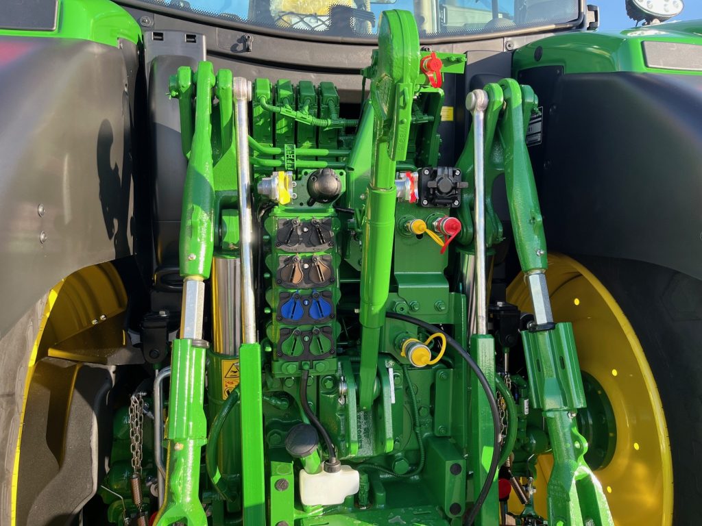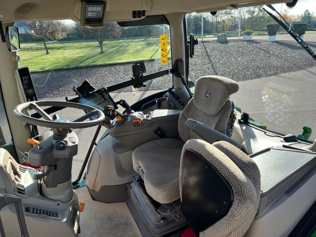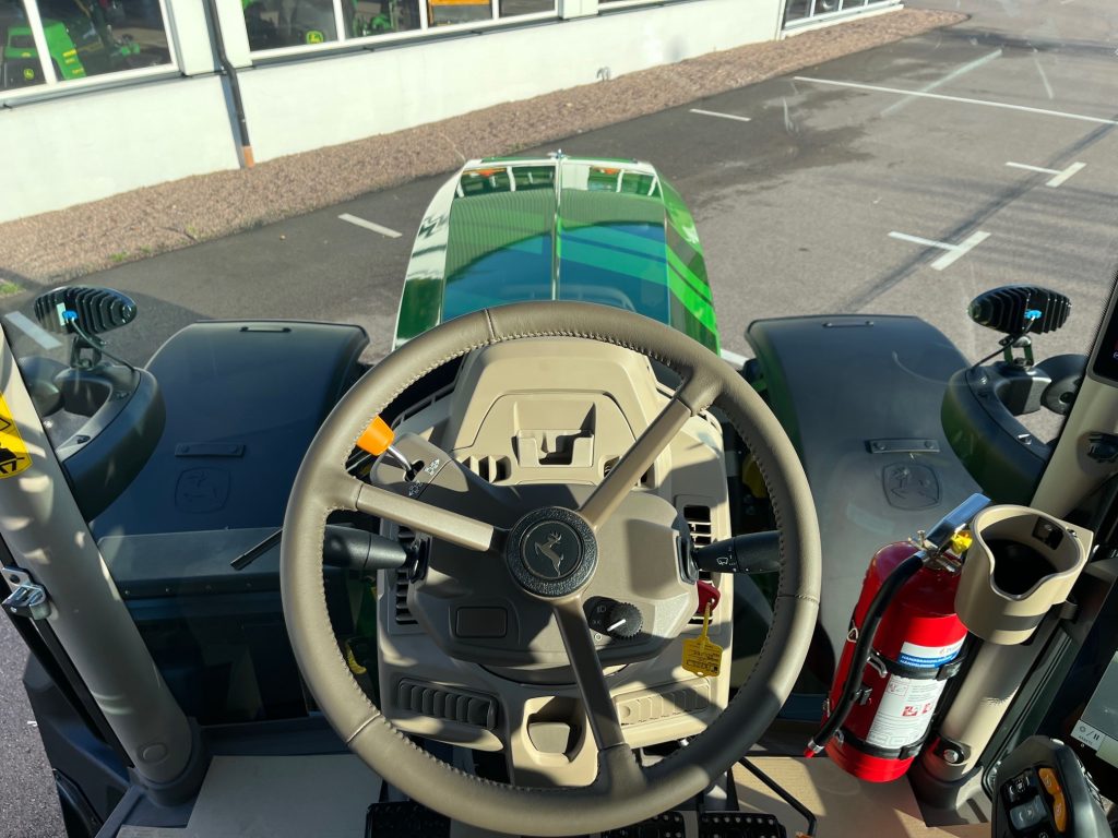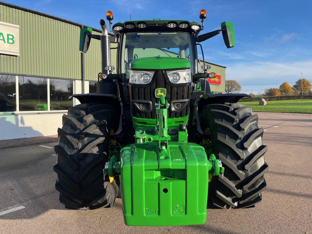 AutoPowr IVT 40 km/h, ComfortView hytt, CommandARM med CommandPRO, Hydraulisk hyttfjädring, Premiumsäte, Speglar - Elektriskt justerbara, 6,5-tums radio med pekskärm, Panoramadörrar, Bakaxel av flänstyp, 4WD-framaxel - TLS Plus med bromsar, Däck Trelleborg, 650/65R42, 600/65R28, Stabiliseringsstag - automatiska, Bakre kraftuttag - 540/540E/1000, Hydraulpump - 155 l/min, 4 elektroniskt manövrerade hydrauluttag (SCV) - Premium, Förberedd för AutoTrac, SF7500-Mottagare SF1, G5Plus CommandCenter + 3årig licens Advanced, JDLink-modem, Elektrisk Joystick Programerbar, Läderklädd ratt, Kylfack, Elektronisk startspärr, Monteringsskena för monitor, Tryckluftuttag vid trappstege, System med pneumatiska vagnsbromsar, 2-kretssystem, 2-ledings hydraulisk vagnbroms, Variabel rattstyrning, Extra kraftiga bakfälgar, Bakre skärmförlängningar, Vridbara framskärmar, Frontvikt - 1150 kg, Ultimate belysningspaket, Dubbla roterande ljus, Mittmonterad arbetsbelysning - LED, Pickuphitch med krok, Dragbomsinsats för pickuphitch, Ultimate frontlyftpaket 4ton, Extra hydrauloljebehållare, Hydraulisk IPM, Elektronisk Servicekontroller
