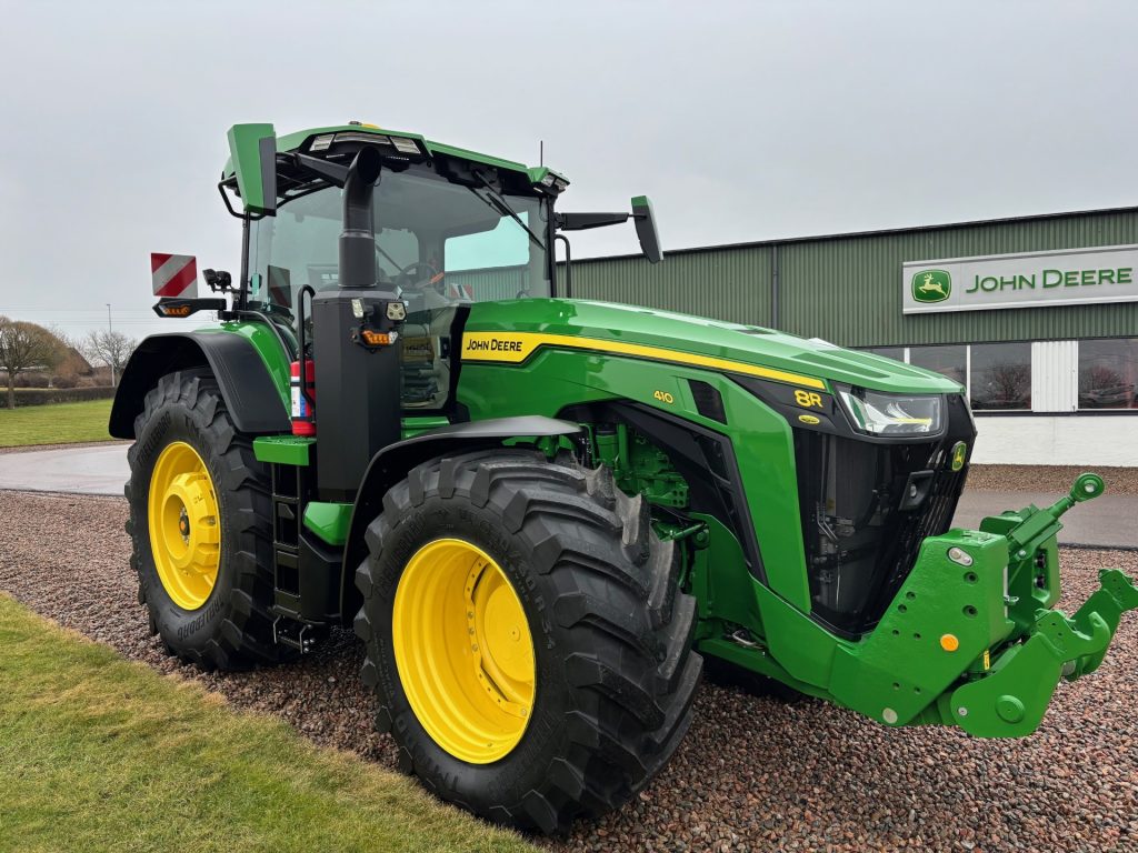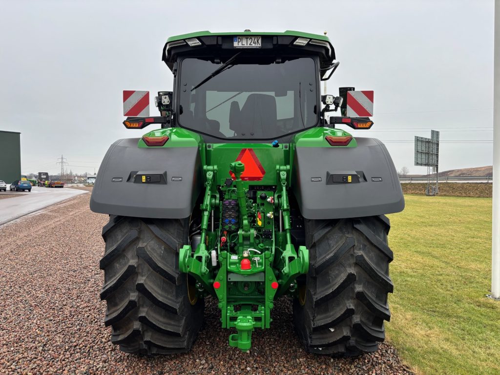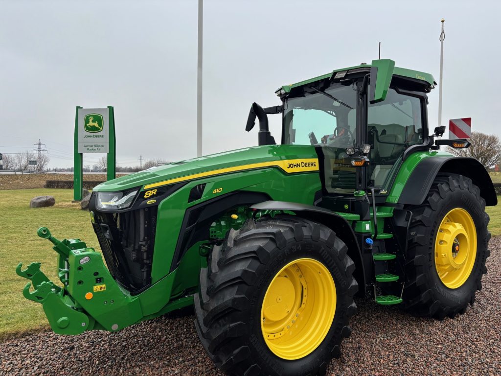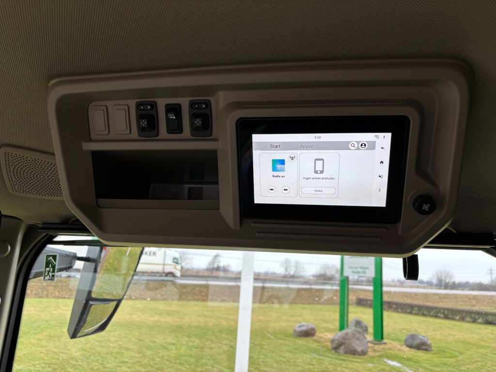 John Deere Signature Edition, eAutoPowr elektrisk variabel växellåda (EVT) 40 km/h, CommandPRO, Ultimate Comfort- och Convenience-paket, ActiveSeat II, Ultimate Visibility-belysniningspaket, G5Plus CommandCenter med G5Plus utökad monitor, Integrerad StarFire 7500-mottagare med SF1 G5 Advanced 3-årslicens, JDLink, Hydraulisk servostyrning, Dubbel hydraulpump, 318 l/min, Fem elektriska 1/2tum hydrauluttag bak, 45 mm 1000 rpm och 1000 ekonomi rpm kraftuttag, växlas elektroniskt i hytt, 3-punktslyft kapacitet: 9000kg, 3-i-1-lyft, inkluderar skenor och dragbom i kategori 4 att använda med en sprint på 50 mm, inklusive gaffel, ILS med oljebroms framaxel, Trelleborg Bak VF710/75R42, Fram VF650/60R34, Elektronisk startspärr, Tonad bakruta. Integrerat roterande ljus, Generator 330A, Förberedd för John Deere maskinsynkronisering, Behållare för hög oljekapacitet, 80 mm kuldragsinsats för 3-i-1-lyftskensystem, Premium frontlyft, Vagnsbroms, tvåkrets-luftbroms och tvåkrets-hydraulbroms, Hjulvikter: Ett par 620 kg, Ett par startvikter på 72 kg och ett par vikter på 205 kg, Centralsmörjning på framaxel, Demotraktor tillgänglig tidigast 2026-10-20