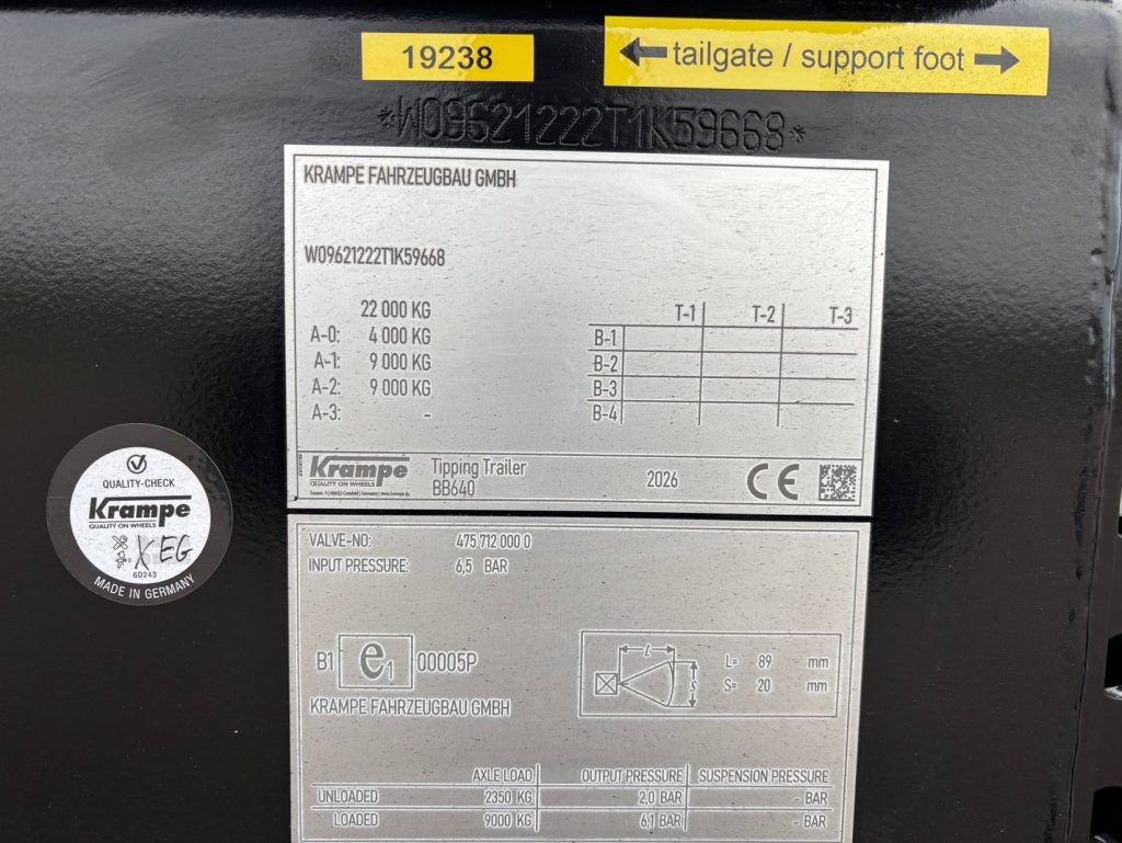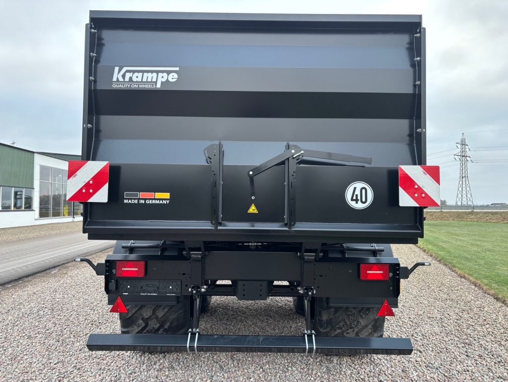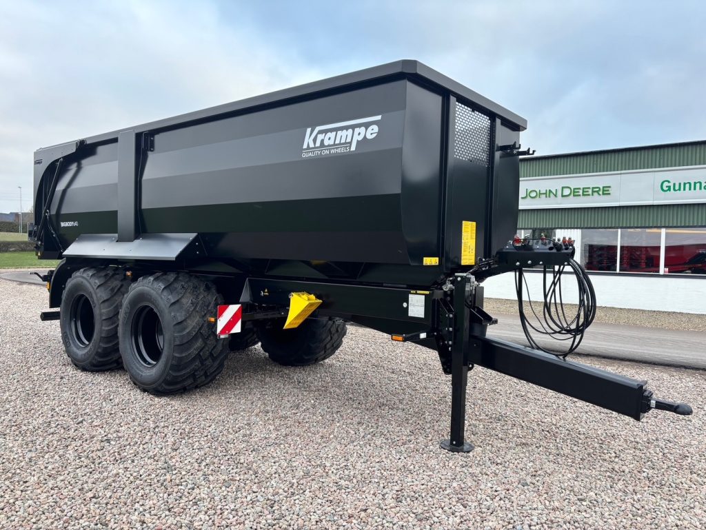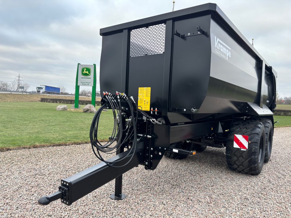 Krampe BB640 Flakmått konisk 6.5x2.32/2.22x1.52m, Volym: 21,9m3, Lastkapacitet: 20,5ton, Hjul: 710/50-26.5, Gummifjädrat drag, K80 koppling, Hydrauliskt stödben, Broms: Luft & Olja, Fjäderupphängda axlar BPW 120x120mm, Hydraulisk bakläm, Led belysning, Hjulbas: 1.55m, Stege på framstam, 60cm gräsförhöjning finns att köpa till , volym då 30.5m3