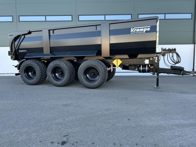Krampe BigBody 800, Hjul 710/50R 30.5 BKT Radials Ridemax, K80 Drag, Tvångstyrning hydraulisk K50*2, Styrning 1;a och 3;a axel, 1.81m hjulbas mellan alla axlar, Luftfjädring, Luftbromsar, Plexiglas för för inspektionsfönster framtill, Stege på framstam, Påkörningsskydd, Förberedd för FlipTop, Hydrauliskt stödben, Hydraulisk bakläm, Led lampor, Oljebehov 60 Liter. Förhöjning 60cm finns att köpa till.
